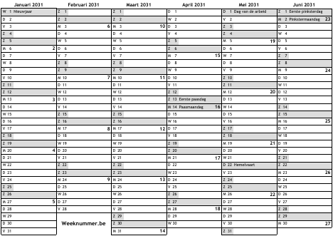 Kalender 2031